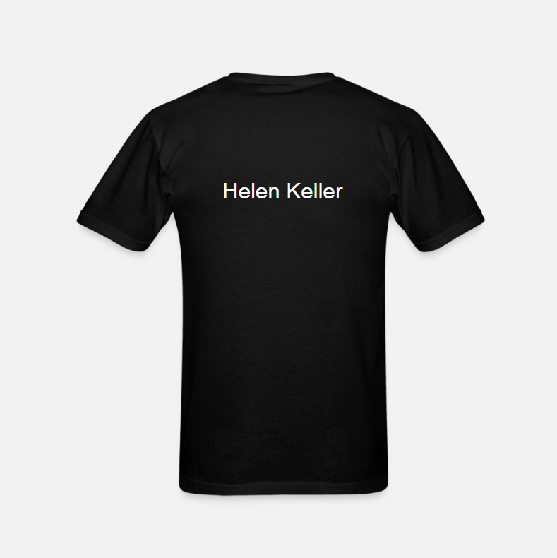 英語名言・格言 T-shirt をご購入いただけます。画像の左が、前、右が後、です。S, M, L が用意できます。