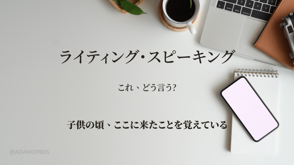 1. I REMEMBER TO HAVE COME HERE WHEN I WAS A CHILD. b. This isn’t right. I remember coming here when I was a child. remember の後に、過去に起こったことを覚えている場合は、 to 不定詞ではなく、動名詞が続きます。この文章が過去形になり、来たことを覚えていた、という場合も同様で、 I remembered having come here … と、remembered の後に have come を動名詞にして続けます。 © Copyright 2022 Adamorbis, LLC. All Rights Reserved. このサイトの全てのコンテンツは、Adamorbis, LLC の知的財産であり、サイトを訪れた個人による、個人的消費に供されます。他者・公を問わず、いかなる手段によるものでも、転載・書き換え、引用等、の手段による内容の伝達は、全て禁じます。