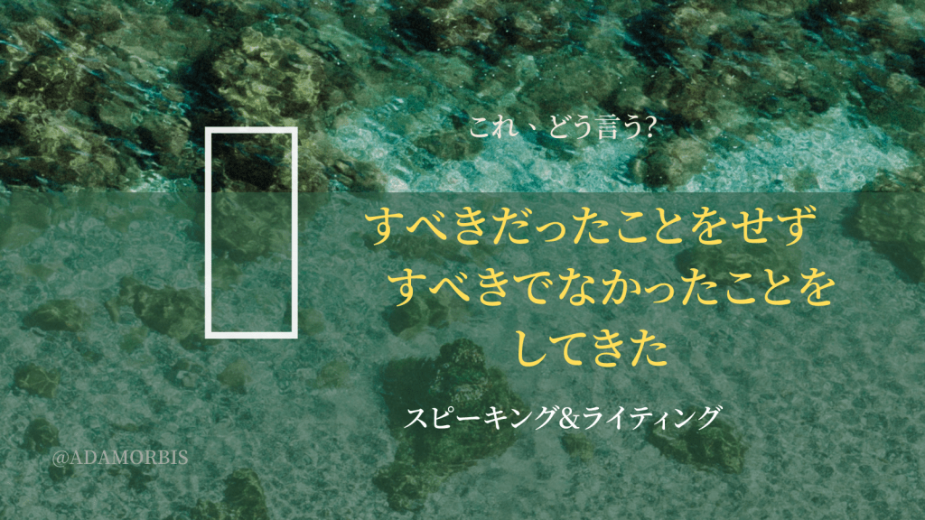 I have left what I should have done undone and done what should not have been done. a. This is correct. I have left what I should have done undone and done what I should not have done. じ、っと文章の構成を分析すれば、あながち間違いではありませんが、前半の what の句が能動態で、後半の what の句が受動態になっていて、英語が好む並行構造(パラレリズム)が、崩れています。なので、どちらも能動態にして、パラレリズムを保ちます。 © Copyright 2022 Adamorbis, LLC. All Rights Reserved. このサイトの全てのコンテンツは、Adamorbis, LLC の知的財産であり、サイトを訪れた個人による、個人的消費に供されます。他者・公を問わず、いかなる手段によるものでも、転載・書き換え、引用等、の手段による内容の伝達は、全て禁じます。