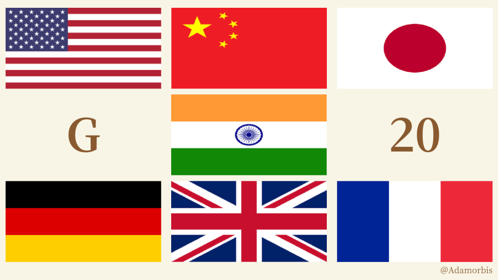 2017年から1~2年おきに、主だった首脳会議に出席した世界の首脳を、その年に入手できる GDP の順に並べるクイズを作ってきました。今年 2023年で5度目です。2023年9月10-11日のG20サミットの主催国と、それに参加した主要各国をGDP順にリストしておきますので、首脳の氏名・肩書、そしてお顔をご選択ください。今年は、中国の習近平氏とロシアのウラジミール・プーチン氏がご出席しないという決定をなさいまして、代理の方々が出席しています。EU(欧州連合)は、国家ではないため、外していますが GDP では第3位です。ほとんど動きが無いと思われる首脳の面々でも、少しずつ交代し、また、首脳会議の参加国や招待メンバー次第で、GDP の順位も変わり興味深いと思います。御覧ください。